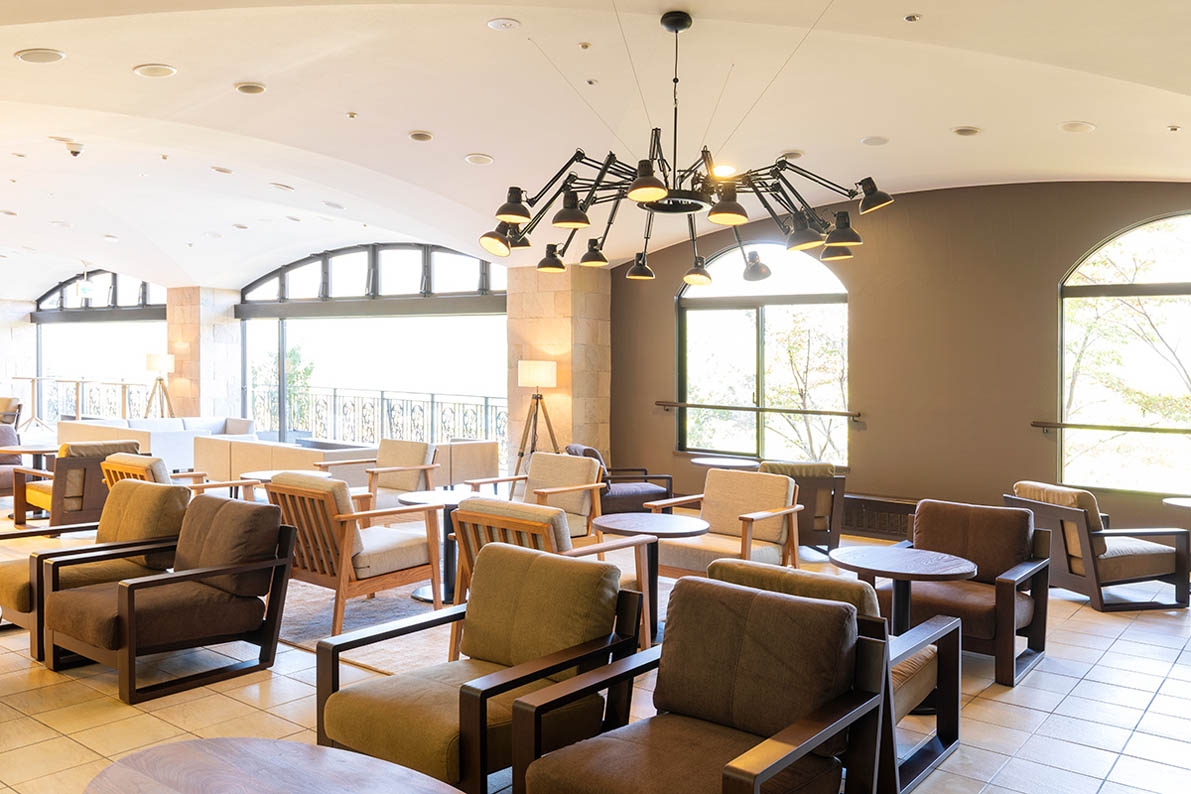ラウンジには暖炉を設け、大きな窓からは美しい箱根の眺望を望みながら、ゆったりとソファで寛げます。目の前に広がる空と緑を全身で感じたり、炎の揺らめきを眺めてリラックスしたり、思い思いの贅沢な時間をお過ごしください。