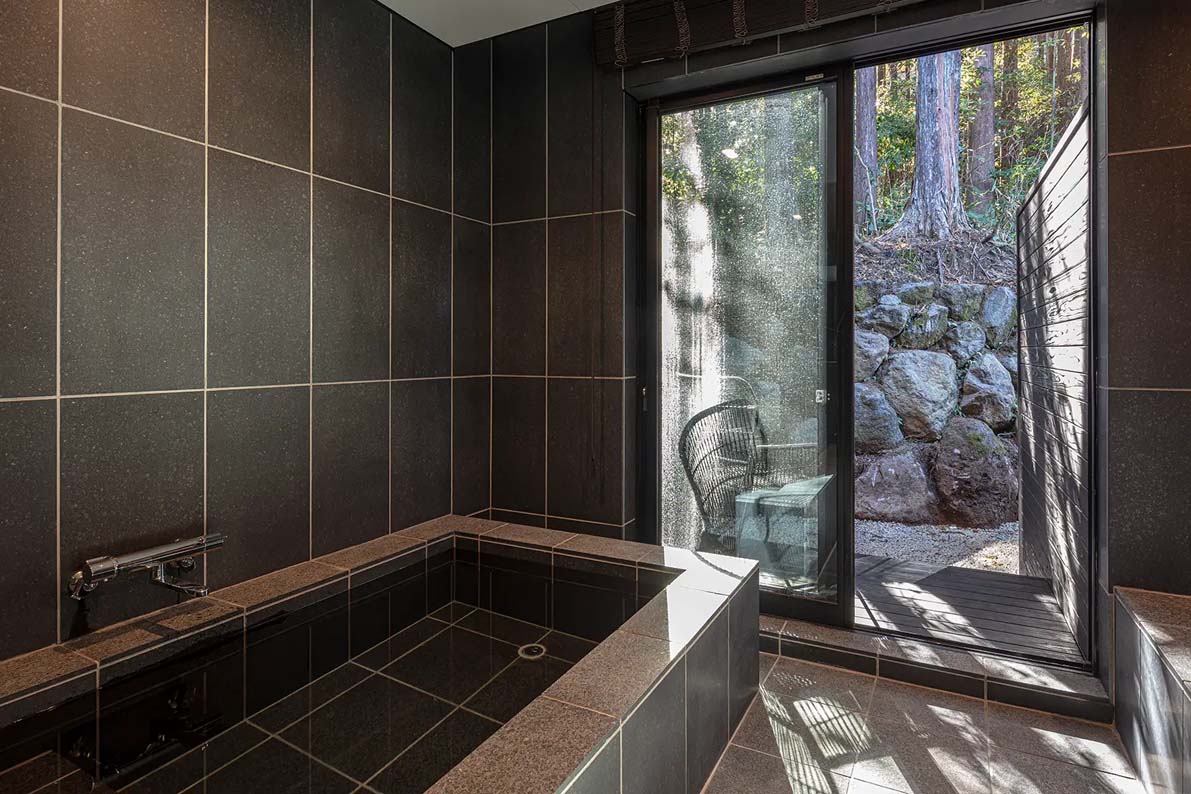 目玉となるのは、自然を眺めながら楽しめるプライベートスパ。開放感のあるバス空間と上質な湯で、日常の疲れを解きほぐす極上のひとときを過ごせます。