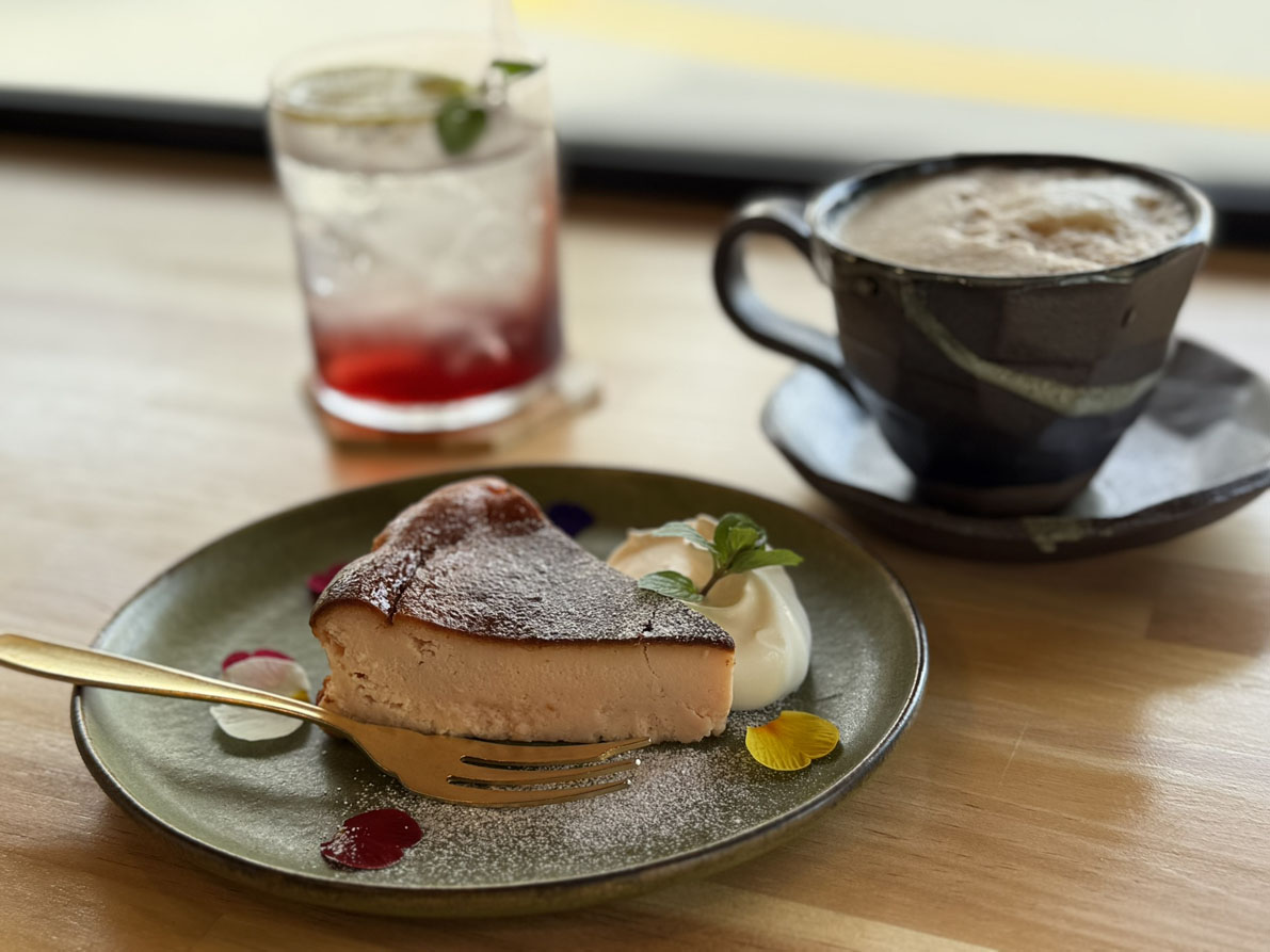 メニューは畑宿清流マス釣り場のニジマスを使ったフィッシュバーガーや、オリジナルピザなどオーナーのこだわりが詰まっています。自家製スイーツやドリンクメニューも豊富で、桜のバスクチーズケーキ(季節限定)やレンズ豆のお汁粉、オリジナルクラフトコーラをいただきましたが、どれもひと味もふた味も凝っていて、驚くほど美味しかったです♪