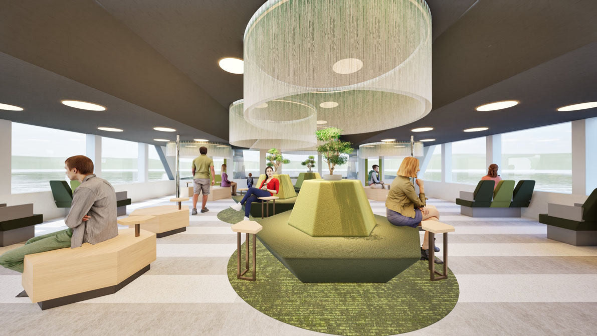 お茶のテーマパークのような船内は、屋上の茶畑を想起させる屋外ベンチ「茶畑だんだん」、黄金に煌めく茶室「茶室 金風庵(きんぷうあん)」、丸窓から芦ノ湖の景色を眺められる「茶室 緑風庵(りょくふうあん)」など、趣向の異なる座席があり、多彩な座席を巡るように船内を回遊しながら、日本のおもてなしやお茶文化の奥深さを発見できる唯一無二の船旅を楽しめます!