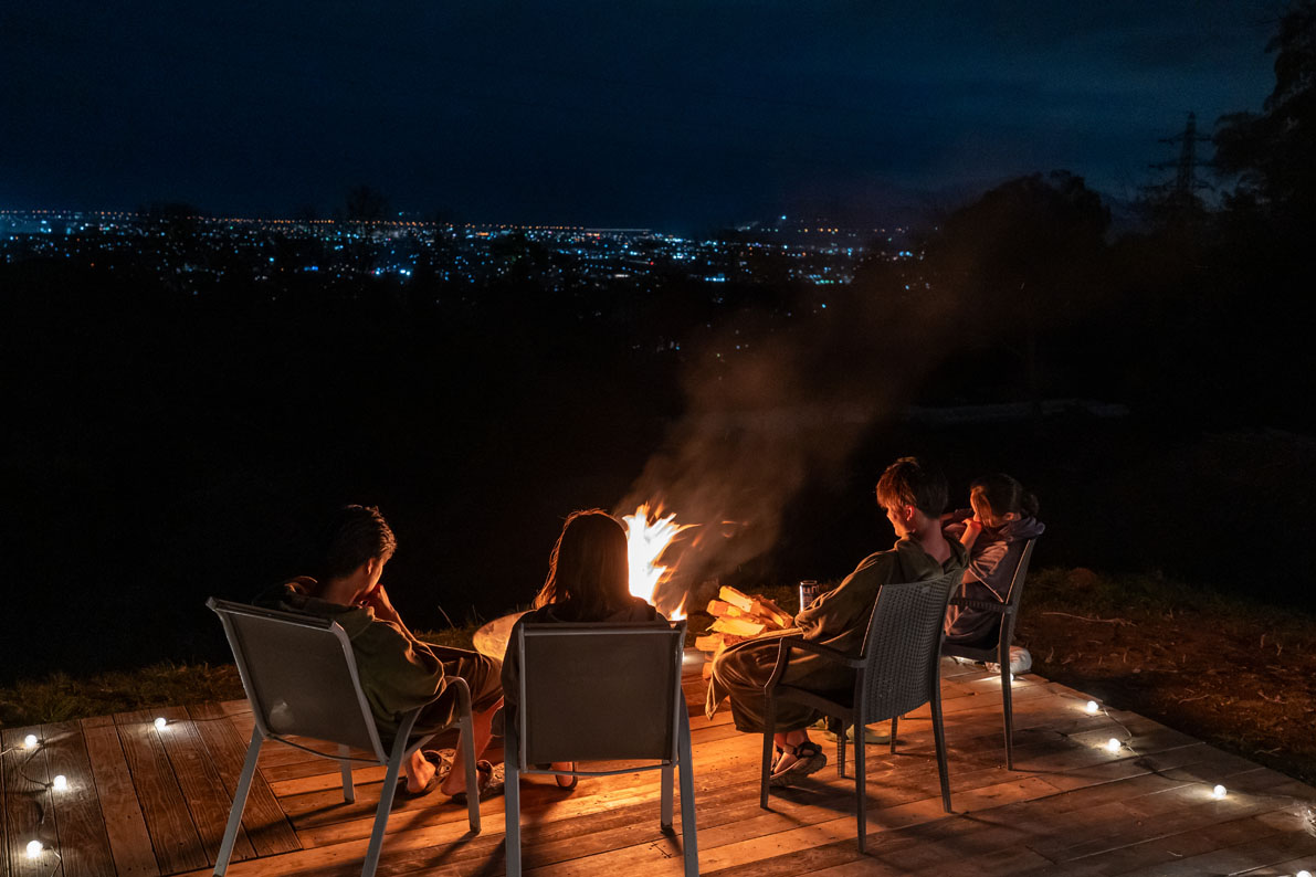 サウナのあとは・・・焚き火やBBQ(別料金)を。土曜限定のナイトプランは小田原の街明かりを眺めながらととのう、ここでしかできない体験をすることができます。
