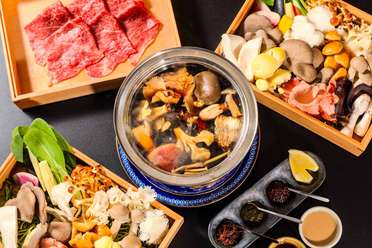薬膳はその日の体調や気分に合わせて追加することも可能で、心と体を芯から整える、まさに自分自身と向き合う鍋。旨みが凝縮されたスープに、海鮮(ホタテや海老団子)や石垣島きたうち牧場プレミアムビーフやアグー豚などを投入すると出汁をたっぷり吸って美味!心と体が整うひとときを存分に堪能できます。