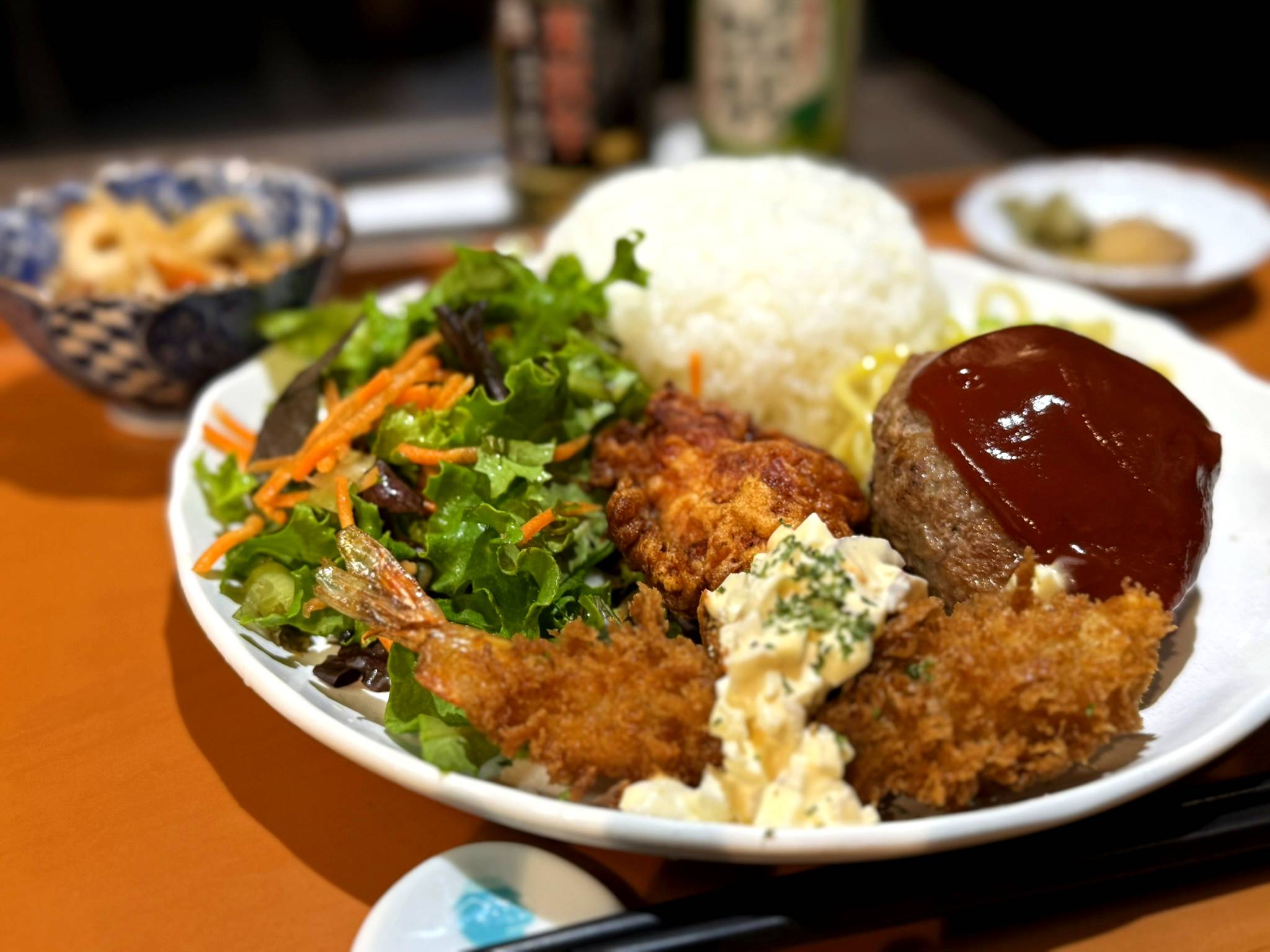おススメの「悪い子はいねがぁ~ランチ」は、注文を受けてから丁寧に手ごねして焼き上げるハンバーグや、しょっつる(魚醤)焼きそば、しょっつるからあげ、エビフライが盛られたボリューム満点の一品。野菜も家庭菜園で作った新鮮が食べられることも!他にも日替わりランチもあり、毎日行っても飽きないラインナップです。
