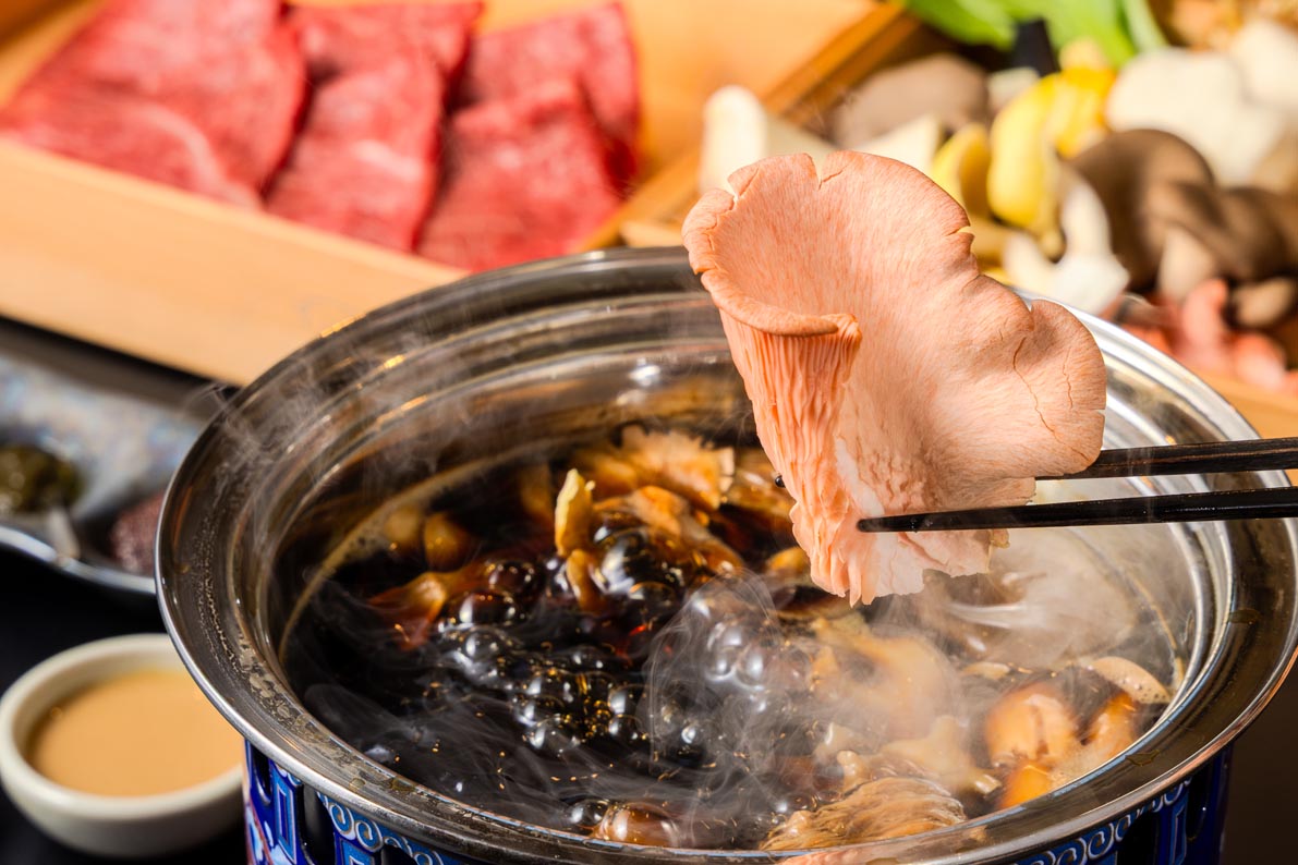 今回、ういろう別館としてオープンした「杏林亭」はひとり鍋専門店。美と健康を意識した食材を全国から厳選して取り寄せ、天然きのこや野菜などを漆黒の薬膳スープで楽しむ、ひとり鍋「黒楽鍋(ごくらくなべ)」をいただくことができます。